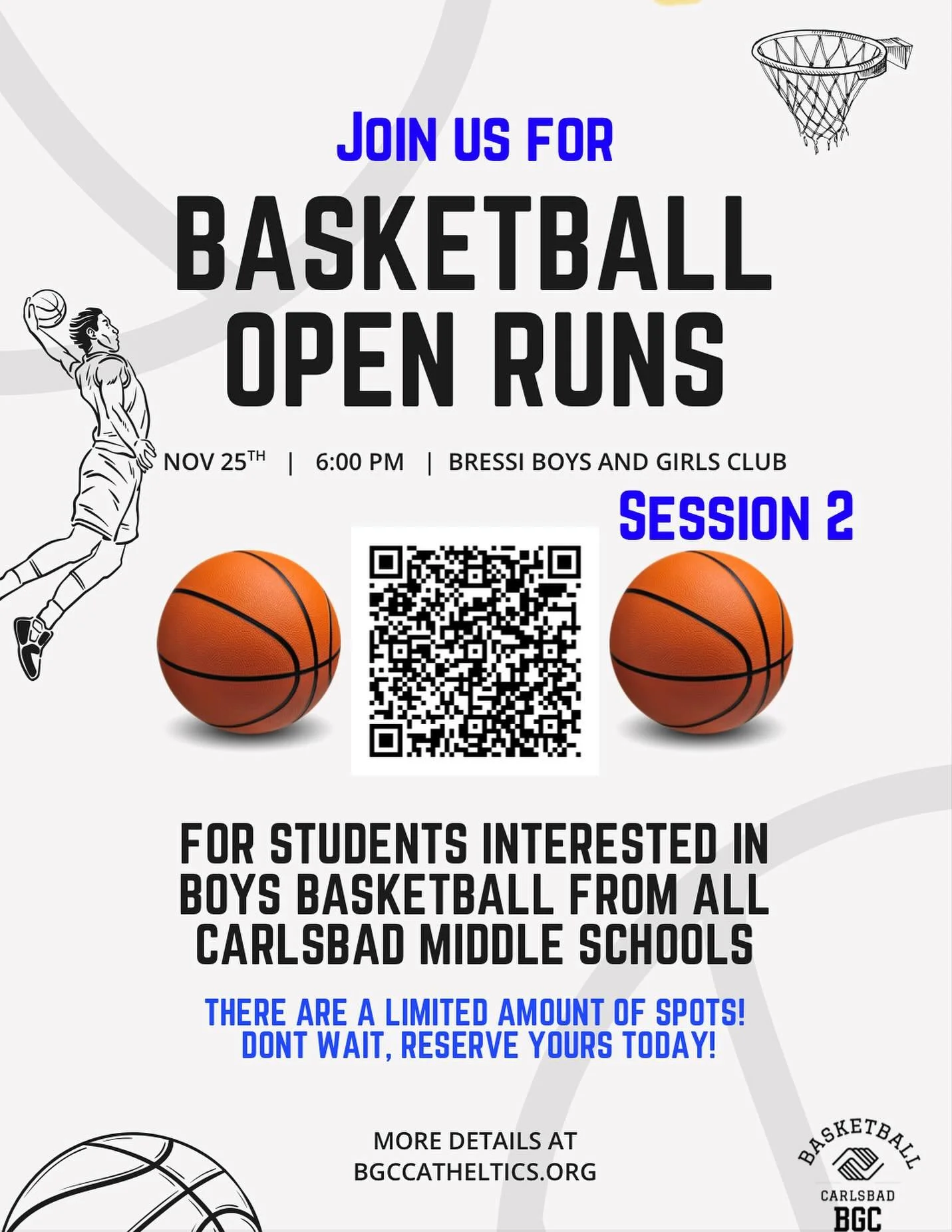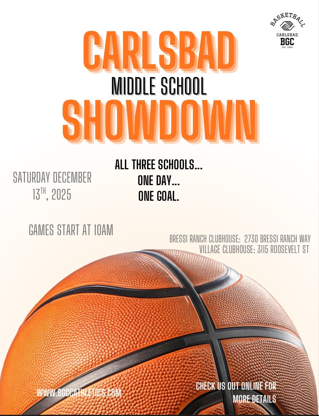 The Carlsbad Youth Basketball League offers an engaging and supportive environment for boys and girls in grades 1st–8th to develop their basketball skills, foster teamwork, and build lasting friendships. Our league emphasizes fun, sportsmanship, and personal growth, ensuring that every participant, regardless of skill level, feels valued and encouraged.